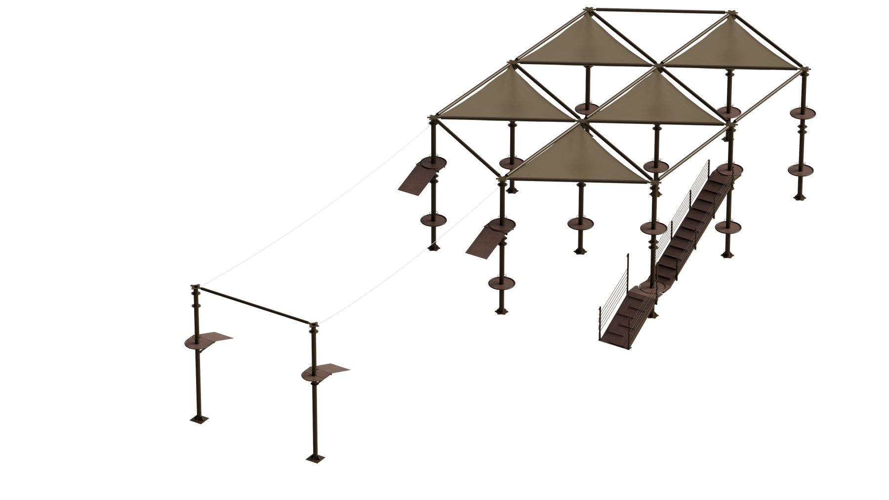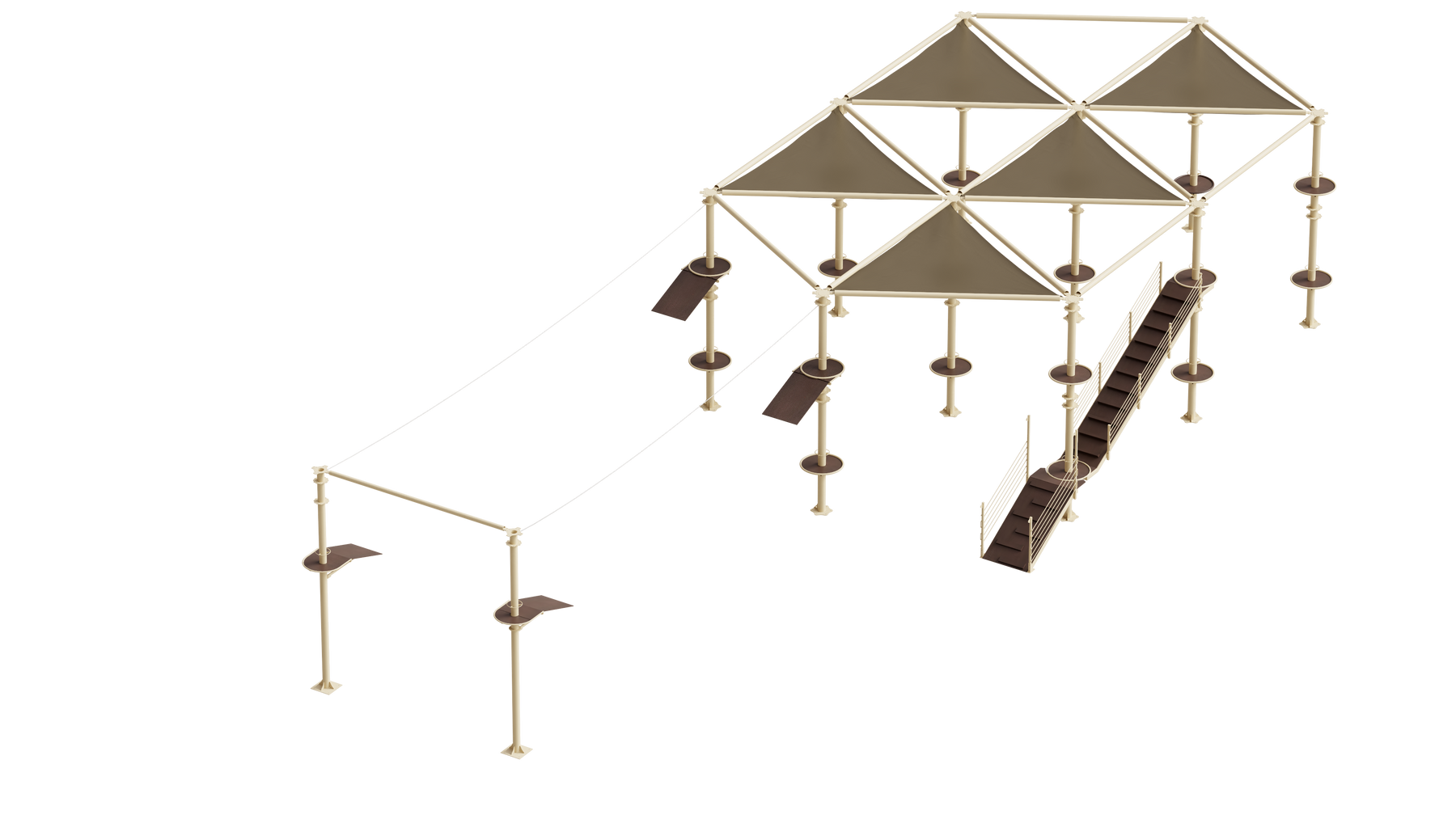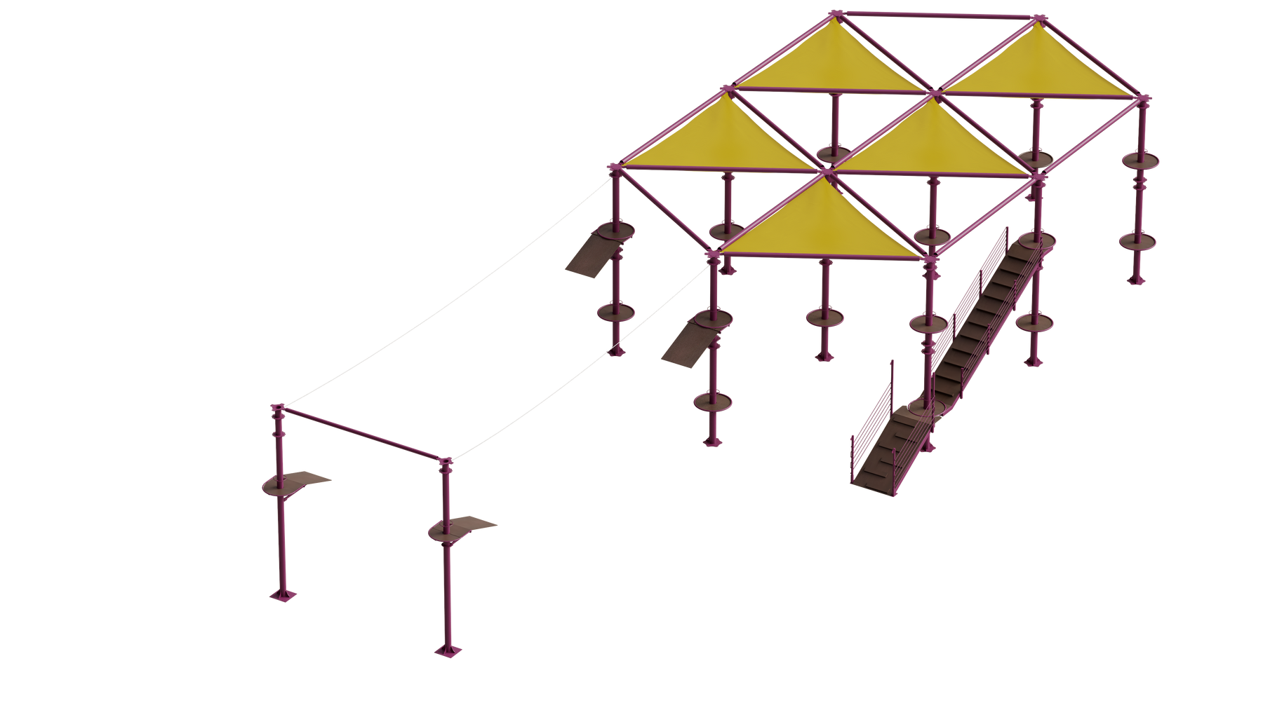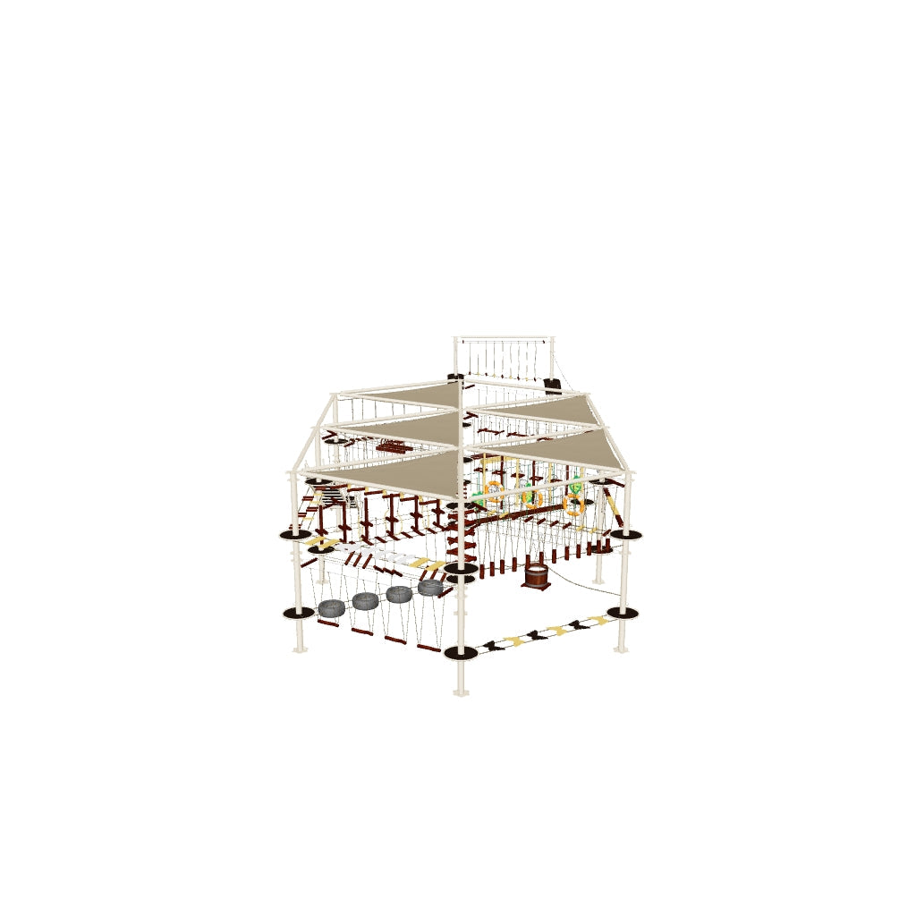 Parque de aventura formado por 12 postes , dos niveles de juegos ,más dos tirolinas y 24 juegos entre pasarelas, puentes, elementos colgantes y muchos más.
