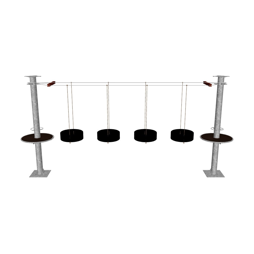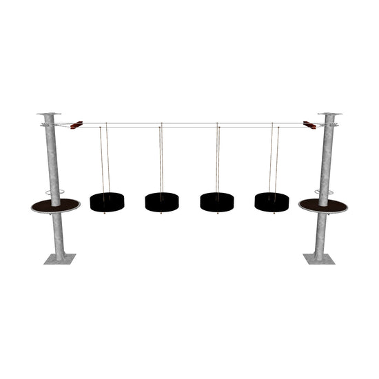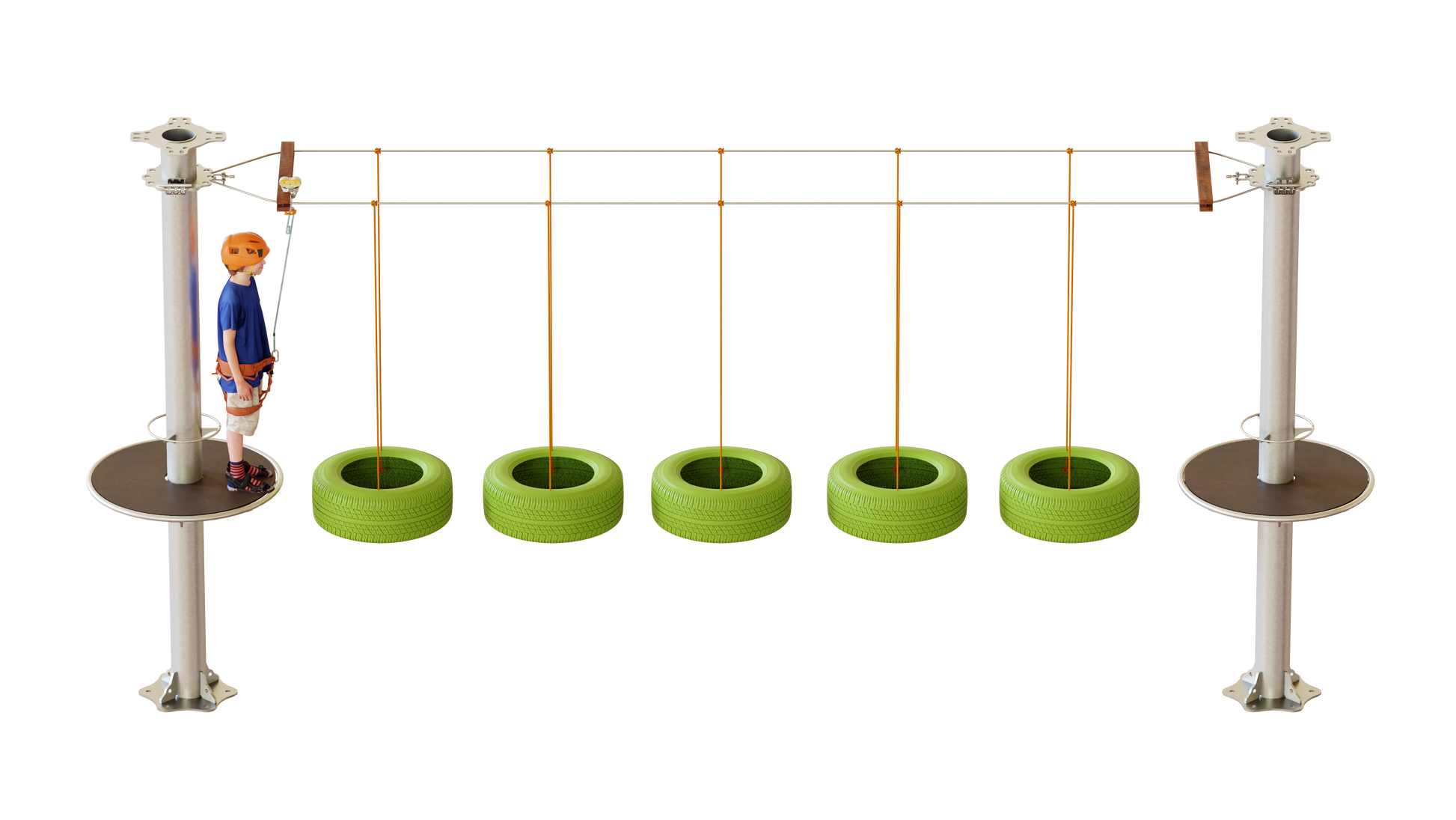 Juego diseñado para parques de aventura, compatible con estructuras de postes de acero o montajes en árboles. Disponible en longitudes estándar de 6 y 7 metros. Para dimensiones personalizadas, consulte con IMN