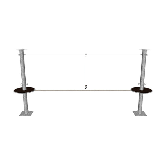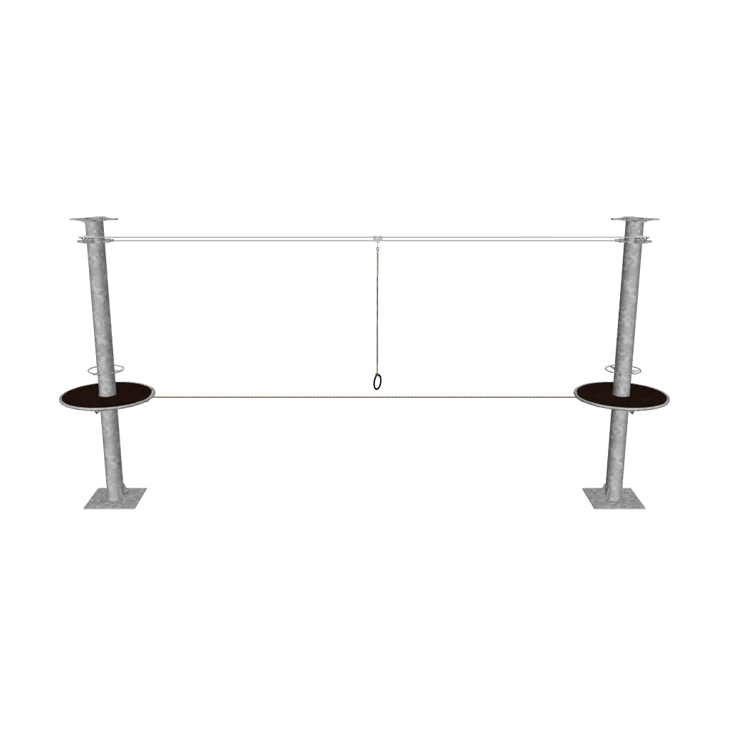 Juego diseñado para parques de aventura, compatible con estructuras de postes de acero o montajes en árboles. Disponible en longitudes estándar de 6 y 7 metros. Para dimensiones personalizadas, consulte con IMN